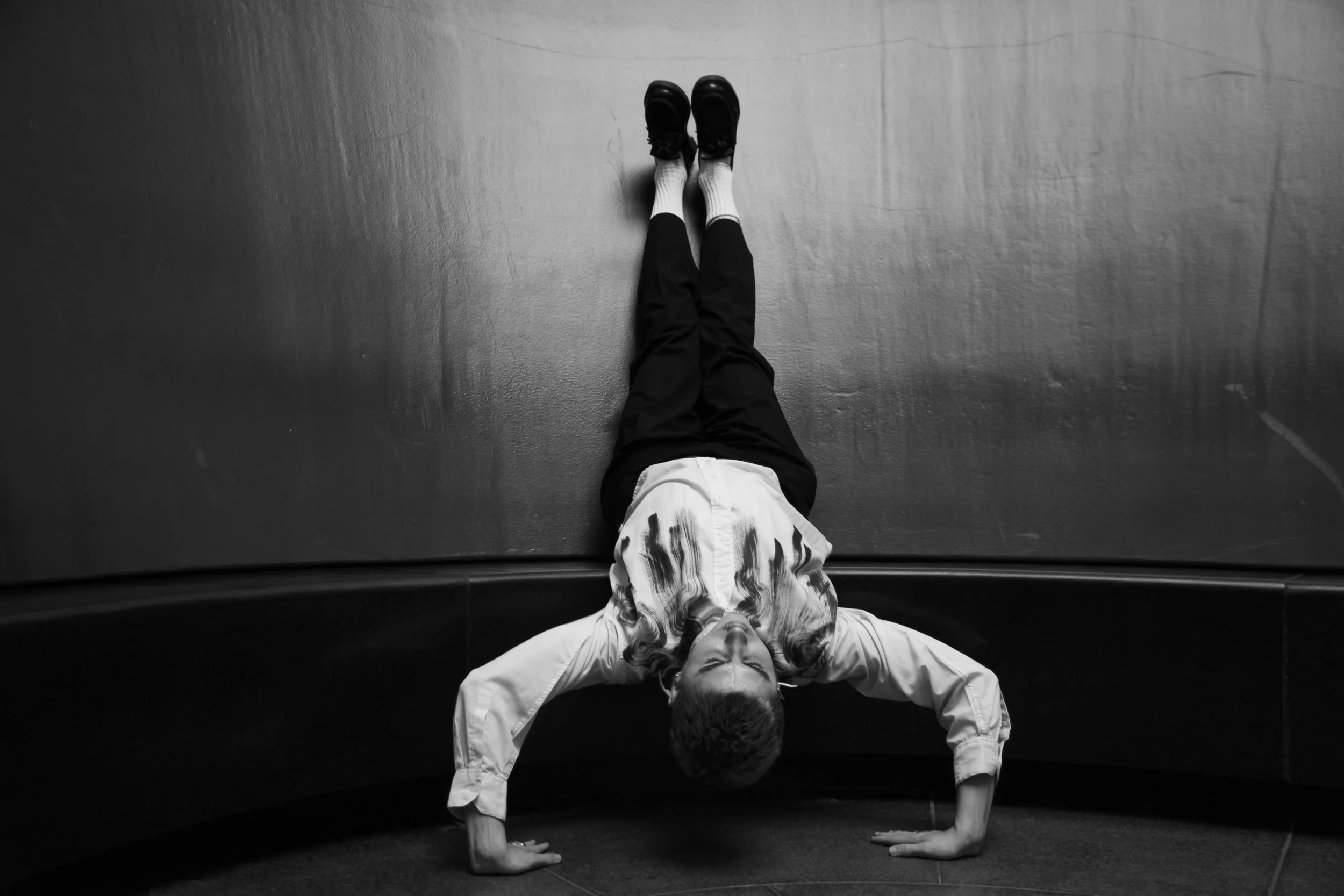 When I was doing this shoot, I had a multitude of ideas and themes that I wanted to incorporate throughout these images—and was quite satisfied with the results. Shot inside of the James Turrell Skyspace in Austin, Texas, I figured that this would be a location where I could practice capturing images that break various boundaries, as well as deviate from what is viewed as “the norm” whilst posing for a photograph. The space features a circular room lit purely by the elements, and can be quite the contemplative and peaceful spot. When I first encountered this space, I knew that this would be a great opportunity to try something new, although I was quite unsure of what I was doing—I only had an idea. Pictured above is Nikita, who also came to me with an idea similar to mine—he expressed similar feelings of attempting to adopt a rebellious nature, and was originally inspired by Willem Dafoe’s shoot for Interview Magazine in Russia. We did initially recreate the iconic image that everyone has most likely seen, but spent lots of time also experimenting with other rather unconventional poses that I hoped would be memorable. The photo above was most likely my favorite from the shoot—not only does it initially have the ability to capture the attention of an onlooker, but upon showing this image to several friends and family members, I noticed that they continued to glance back at the image more than once. This was my goal, ideally, to have an audience question what they were looking at—and not to feel strange about the photo, but rather in a “what am I looking at?” or a “what is he doing?” way. Although my goal was reached, as it was a very simple one, I want to thank Nikita for helping me channel this newfound sense of creativity and boldness within my photography, as it definitely strayed from any sort of normality. I think what really contributed to the boldness of this photo was the awkward and unconventional posing, the intensity of his upward gaze, and the lack of vibrancy—all things which helped me get my point across: that in which beauty and comfort can also be found through disturbance and unease in visual art.
