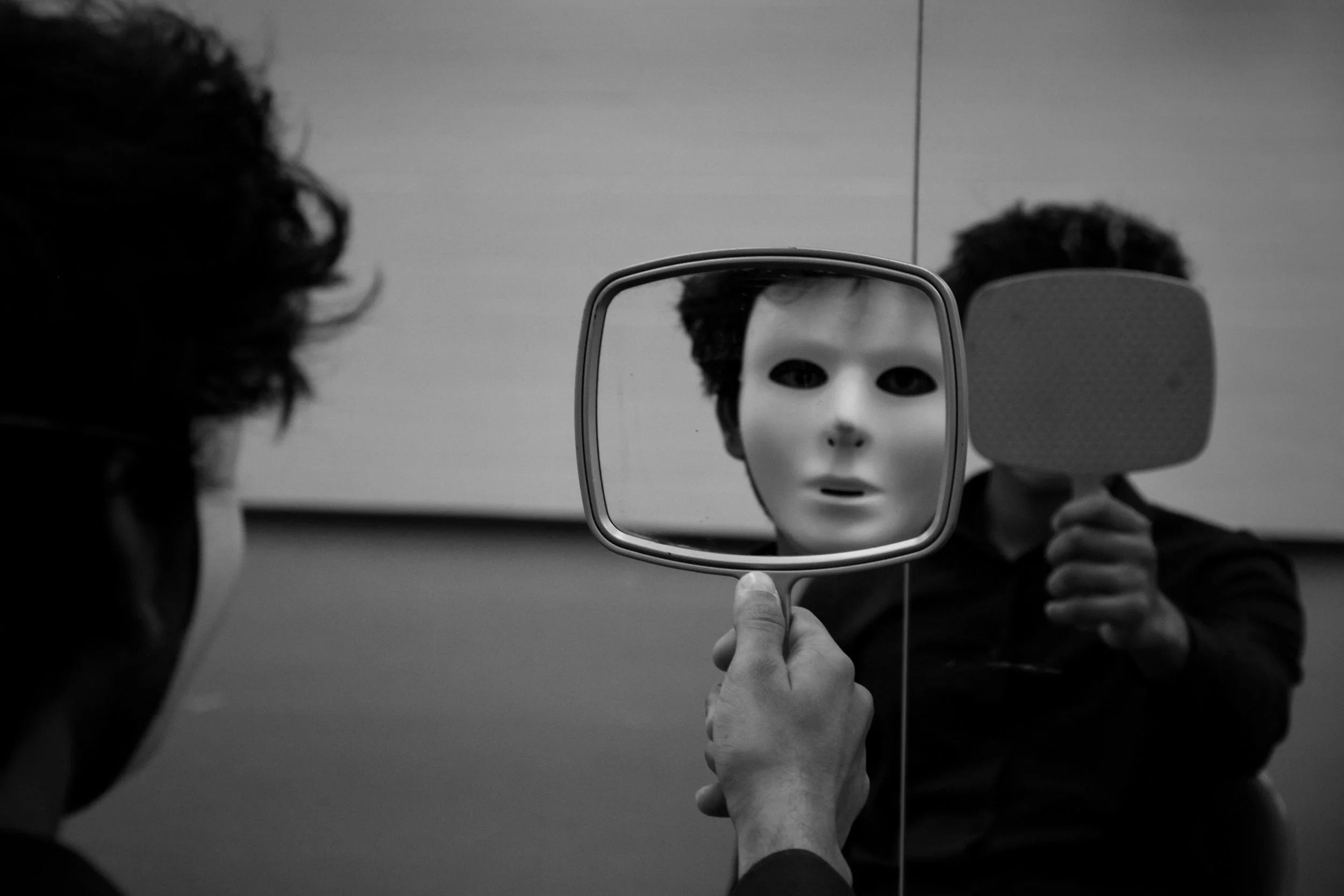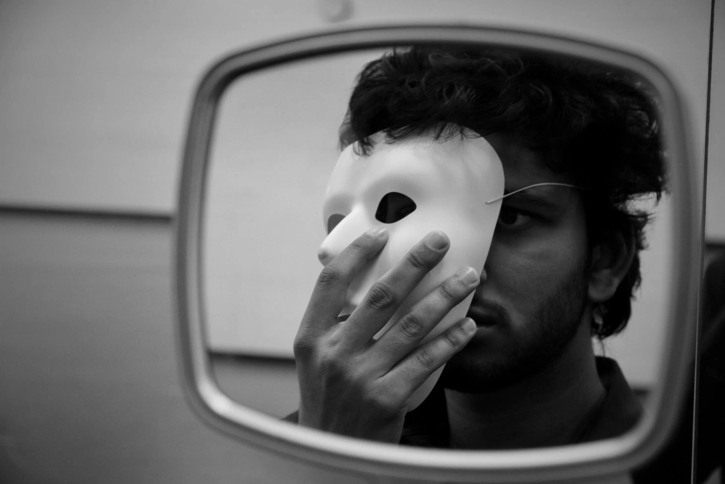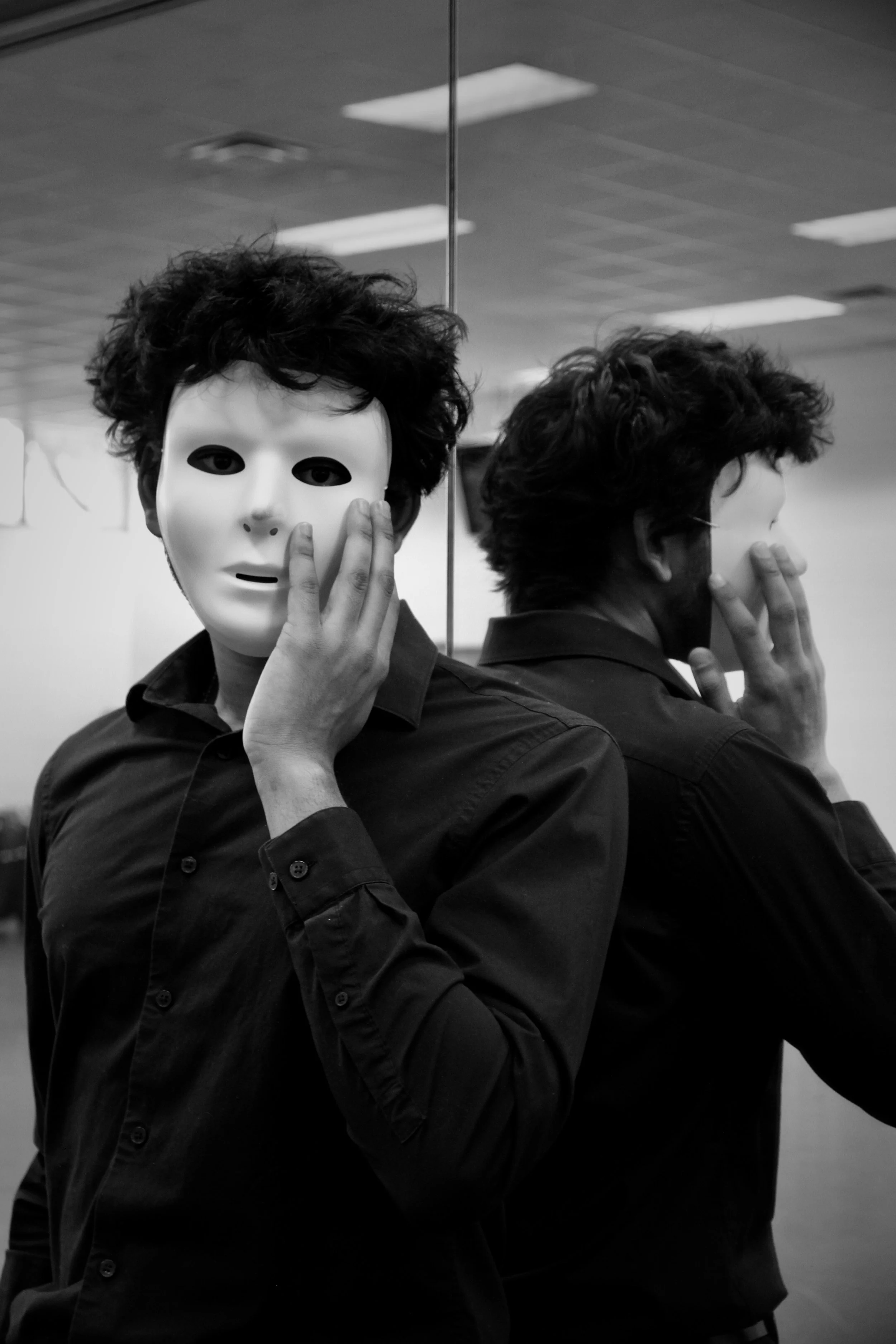 My hopes for this shoot were to portray a picture of a man who is struggling with his identity—someone who doesn’t quite know who he is or what he wants, and by having Arnav face the mirror (pictured below) I was able to capture this idea somewhat. By concealing his real face with a mask and giving him a mirror, he would be confronting himself and his own identity, in a way—making for a strange and unsettling scene.
